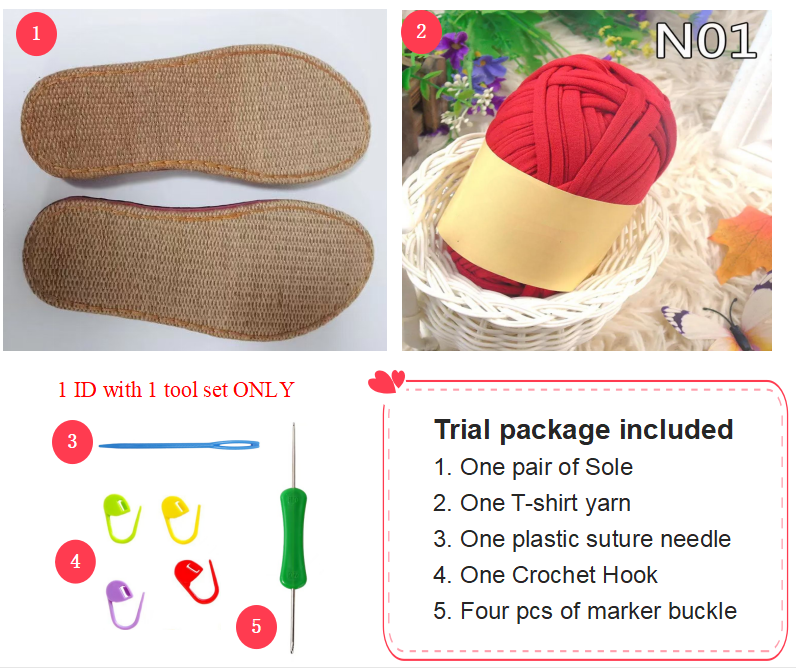 Trial Package For Beginner , Linen Sole Pure Color Yarn Open Toes Sandal Crochet Kits